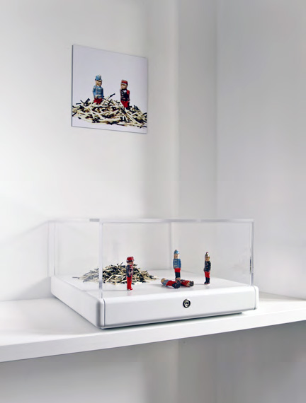 Les personnages sont des jouets en bois destinés aux jeunes garçons (vers 1900). Dans la sérénité familiale chacun pouvait organiser ses batailles sans imaginer les conséquences d’une Grande Guerre.