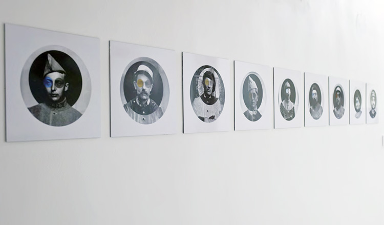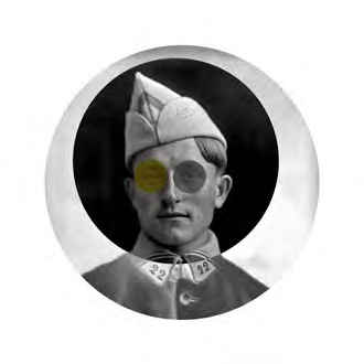 Plaques photographiques (début du 20 ème siècle) numérisées, retravaillées. Portraits de neuf soldats extraits de la série D’un regard, l’autre. |