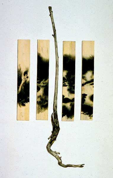 Au premier plan : bambous, papier chinois, encre, cordelettes