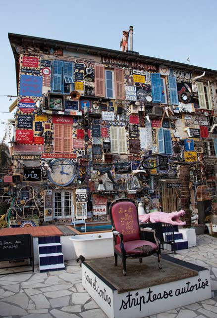 1977 : La façade de ma maison commence à se remplir et bien que j'ai promis de ne pas déborder de plus d'un mètre de la maison, j'envahis petit à petit la pelouse avec des baignoires, des bidets et des cuisinières remplies de terre dans lesquelles je plante des géraniums. C'est la guerre avec Annie qui déteste les cuisinières: ça pourrit, ça s'effondre, ça se casse. Heureusement ma belle mère qui est mon alliée inconditionnelle arrose mes géraniums et leur dispense engrais et soins attentifs. |