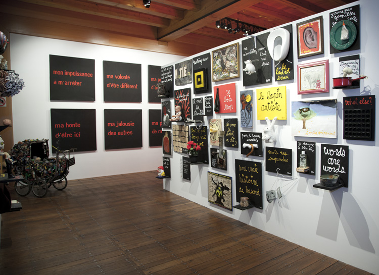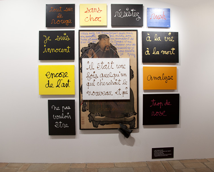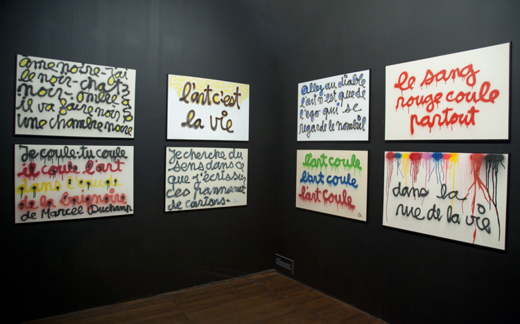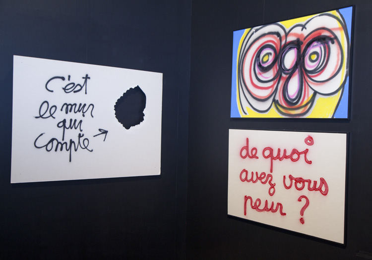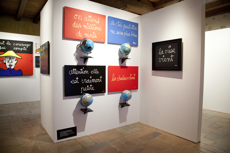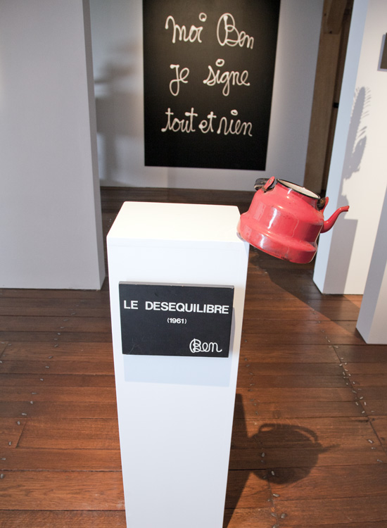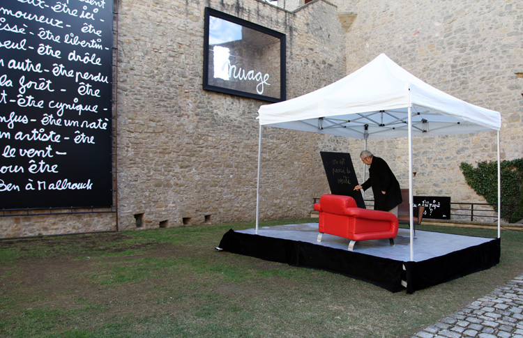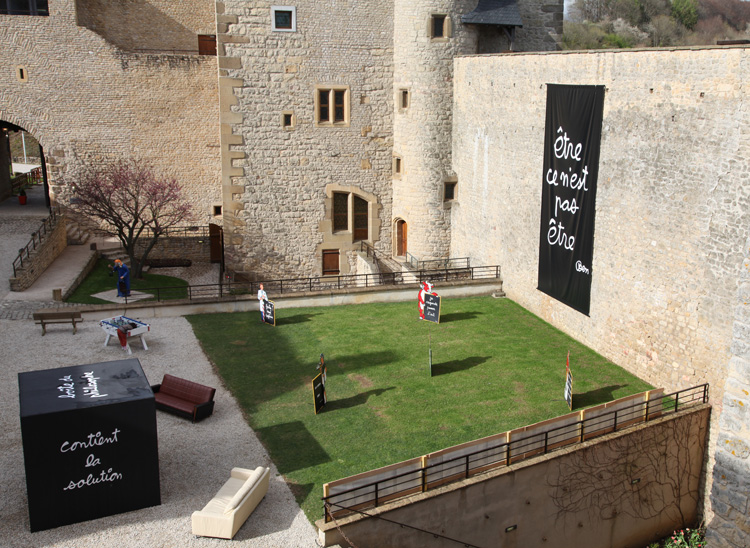 L'exposition investit les espaces du château de Malbrouck. Ben y a installé la plus grande "cour de (ré)création" où prés de 250 oeuvres, (peintures, illustrations, installations, sculptures) se donnent à voir. Le postulat de départ se veut existentiel. "Etre", invite le visiteur à explorer la question philosophique ontologique posée par l'art, en général. |