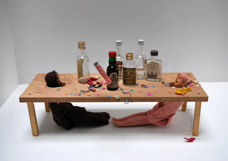 Une quarantaine de micro-architectures, chacune étant le petit théâtre d’un supplice mortel différent, joué par les effigies des artistes.
