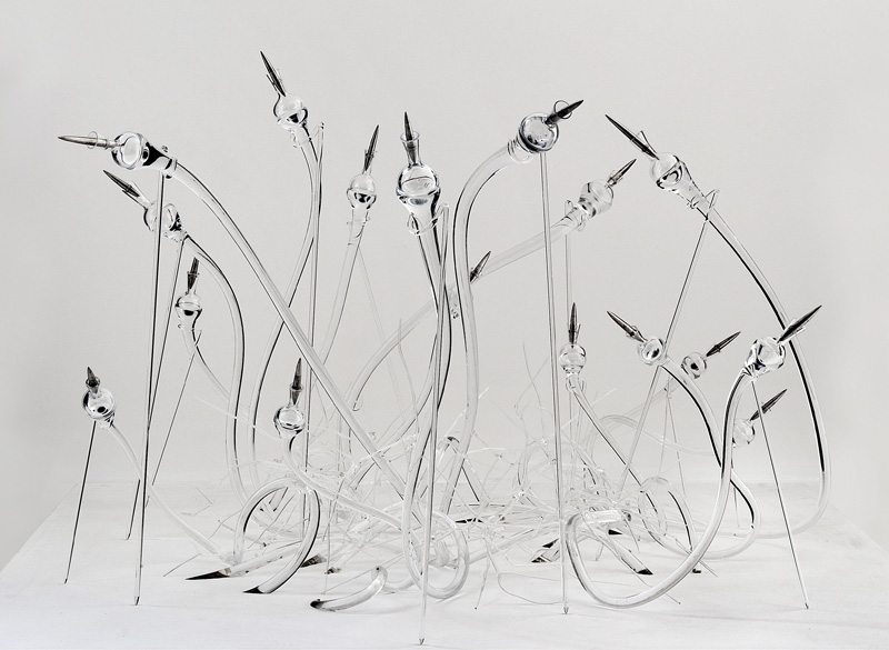 Verre soufflé, verre borosilicate, métal, bois, parfums, 100 × 150 × 150 cm