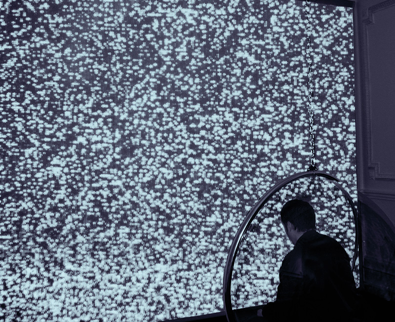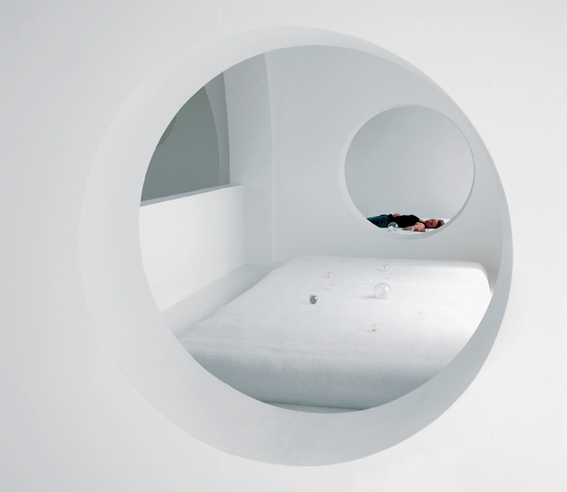 Aménagement d’un ensemble de cellules dans lesquelles sont installées des plateformes recouvertes d’ouate, où sont disposés divers objets et substances permettant de plonger le visiteur dans un état de veille. L’ensemble de l’architecture vibre sur un rythme cardiaque très lent.