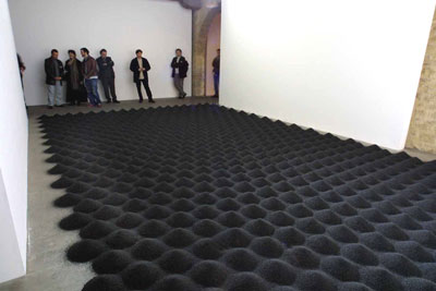 Drawing executed using 3000 kg of mica dust, Sound device attached to wall - 2 250 watt speakers, 8 Iodide projectors - 300 W cold light