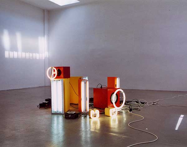 10 enceintes, tubes fluo, amplificateurs, lecteurs CD, bandes sonores