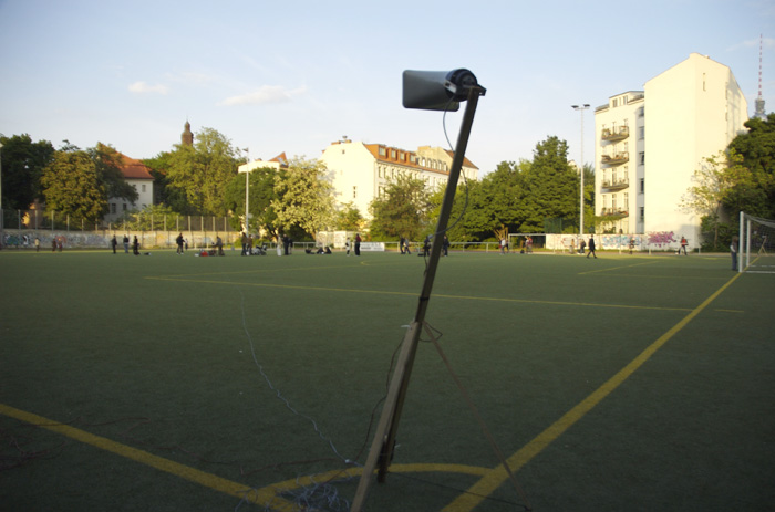 La proposition sonore s’inscrit dans la durée et dans le paysage. La diffusion sonore quadriphonique est déployée sur 1 à 4 hectares : les sons circulent et couvrent cette étendue, l’occupent, la trace et la forment. il s’agit de construire et de délimiter l’espace spécifiquement par le son, sans recourir à l’architecture ou la topographie. L’espace sonore est construit en direct sur des mouvements, des trajectoires et des matières, conférant une dimension sculpturale au champ sonore. |