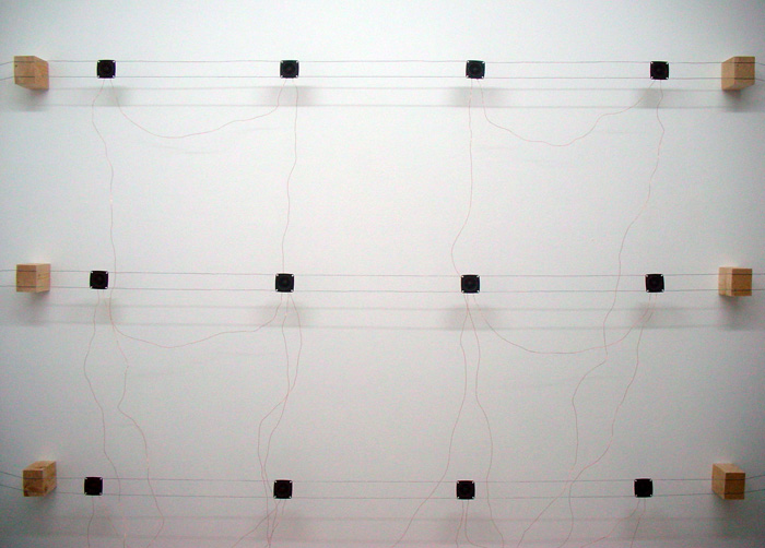 Retour à la surface 2006 Installation sonore, 220 x 140 cm Haut-parleurs, fil de cuivre, fil de fer, son en boucle sur DVD