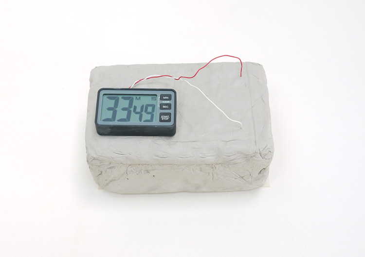 Bloc d'argile, minuteur de cuisine, fil de cuivre monobrin rouge et blanc, 210 x 130 x 90mm