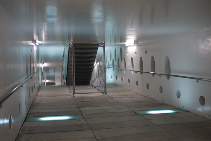 Œuvre pérenne, diffusion sonore spatialisée, passerelle Mertens, Carnon, 2011