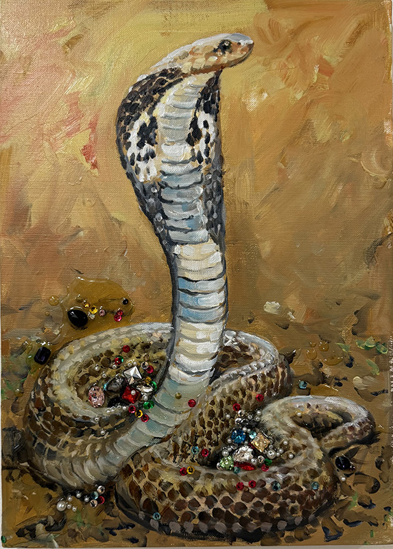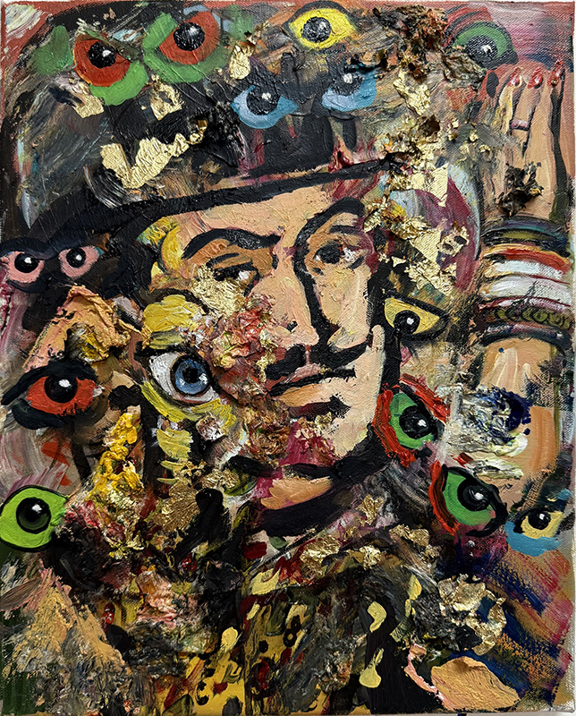 Huile, résine, feuille d'or sur toile, 45x38cm |