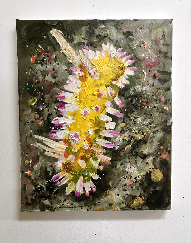 Licorne, acrylique, huile et résine sur toile, 30x24cm |