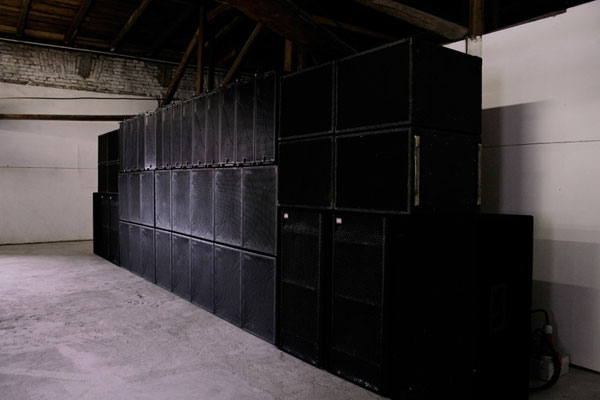 La pièce 194 dB d’Anne-Valérie Gasc consiste en un dispositif sonore d’une puissance telle qu’il atteint un seuil où l’onde sonore se transforme en onde de choc faisant ainsi entrer en vibration le sol de la galerie. Traversé par trois vagues telluriques, l’espace devient le temps des 2,8 secondes de l’explosion sonore, la caisse de résonance et l’épicentre d’un séisme entendu à plus d’un kilomètre à la ronde. Munis de boules Quiès, les visiteurs sont invités aux premières loges de cette onde de choc préférant à l’invitation de l’artiste et face à cette dévastation, la tactique du repli plutôt que la tentative de fuite.