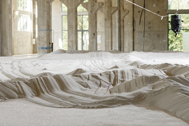 Vitrifications consiste en une tentative d'édification robotique, à l'échelle du corps, d'un tracé généré numériquement, à partir du volume de la Grande halle du centre d'art contemporain Les Tanneries. Tout l'été 2019, la Grande halle est devenue le laboratoire d'un projet de construction d'une ruine de verre. L’œuvre est le fruit d'une démarche expérimentale poussée, artistique et technologique, menée en collaboration avec l'Inria (Institut national de recherche dédié aux sciences du numérique).