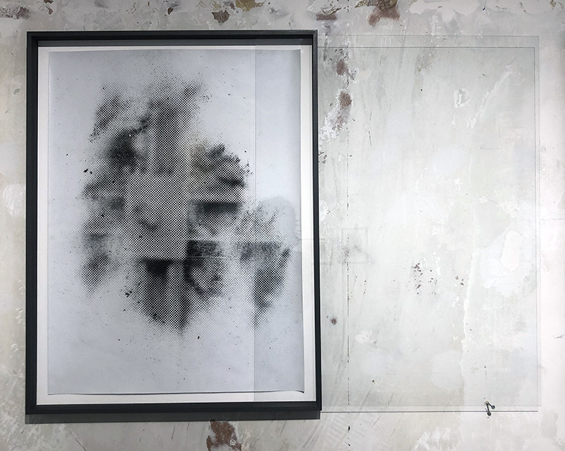 Anne-Valérie Gasc présente Première ligne, une série de huit croix de saint-André sérigraphiées à la poudre noire sur du papier ignifugé. Figures affaiblies d’objets de renforcement de l’architecture, ces images mettent en tension la force d’une ligne de front et la fragilité d’une écriture inaugurale. Pour exacerber cette contradiction, les tirages seront successivement brûlés à l’occasion de moments performatifs : la combustion de la poudre noire marquera définitivement le papier de l’image des croix. Dès lors, c’est dans le geste destructeur que s’anime ici la puissance des œuvres rappelant — à l’instar de William Turner qui, en 1832, dynamita les toiles alentours à la sienne, d’une seule tâche de peinture rouge ajoutée in extremis à sa marine Helvoetsluys — que tout vernissage n’est pas un moment d’achèvement du travail mais, au contraire, l’instant de son amorçage. L’œuvre Première ligne d’Anne-Valérie Gasc ne prendra son autonomie qu’à l’instant périlleux de sa mise à feu. |