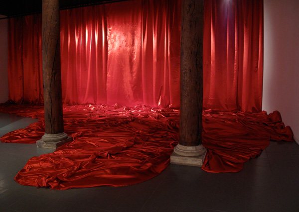 Installation, usure sur satin rouge