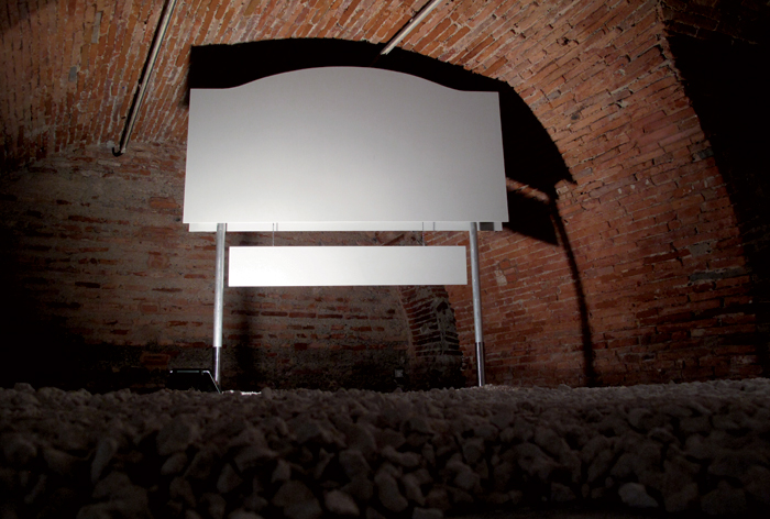 Bois, peinture (75 x 65 x 94 cm) vidéo (durée 2’27’’ en boucle)