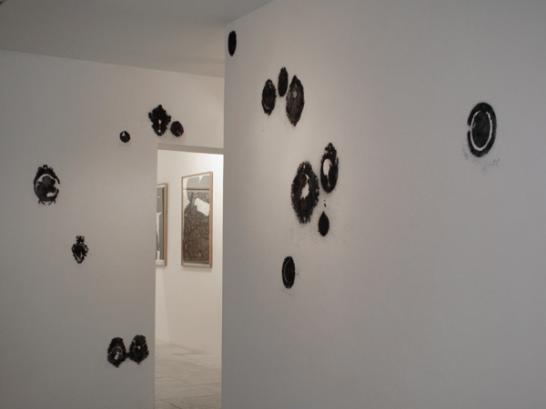 Dessin au charbon de bois soufflé sur colle, dimensions variables