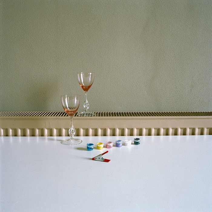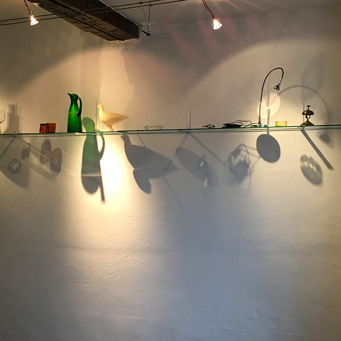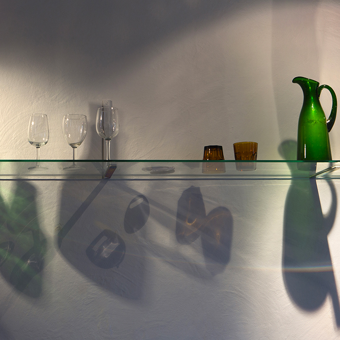 | Attention particulière /2, vitrine lumineuse, objets en verre venant de la sphère de la cuisine et de la table, Contact, tirage lambda 120 x 45 cm |