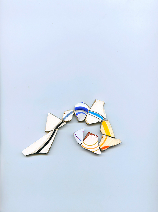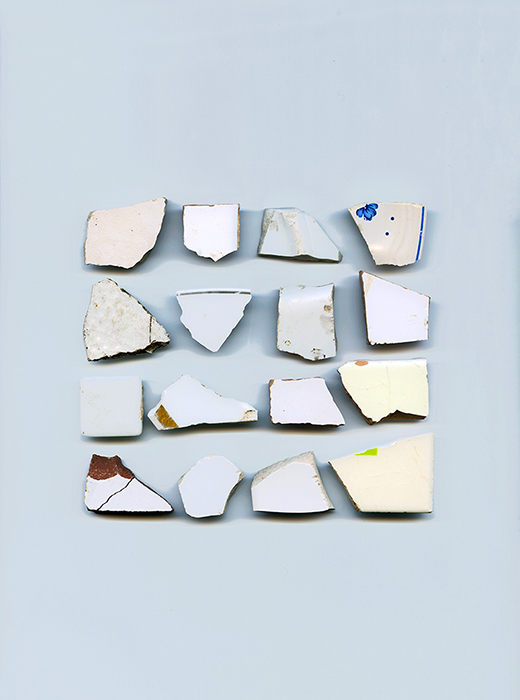 Format 36 x 45 cm, tirage pigmentaire sur papier Hahnemühle, tessons collectés sur les chemins de campagne dans l’Hérault, hiver/printemps 2019 |