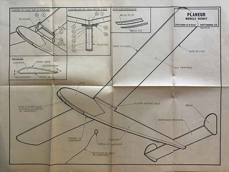 Plan pour la construction d’un planeur, revue Système D N° 459, 1984