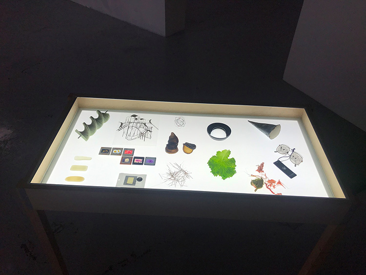 Vitrine lumineuse, fragment d’œuvre d’artistes ayant exposés à Vidéochroniques entre 2004 et 2020