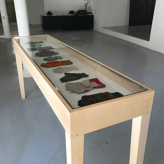 Vitrine, gants trouvés, collection du FRAC PACA