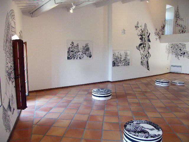 Vues de l'exposition Emprunter le paysage, Chapelle de Lurs, avec le Frac Paca, 2010