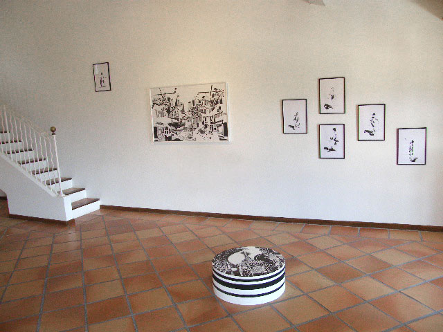 Utilisant les zooms sur le paysage, l’artiste choisit des points d’observation et prend la nature toute entière comme atelier. Elle fait pénétrer le paysage et la végétation dans l’espace d’exposition. Dans ses grands dessins sur papier présentés au mur ou dans la série des bois au sol, la pierre et la végétation de Lurs rencontrent des visions plus urbaines des villes du Sud comme Marseille et Sète. Tandis que suspendue, une cage à oiseau blanche immaculée rappelle les lanternes japonaises et oscille entre rêve et réalité.