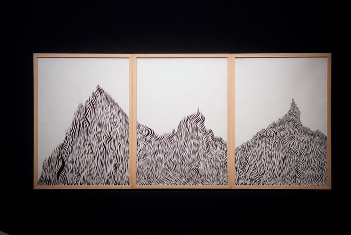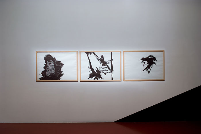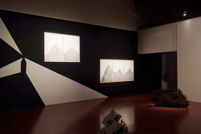 Peinture murale et série de 5 dessins, encre sur papier Vinci, 75 x 105 cm, Production 3bisf