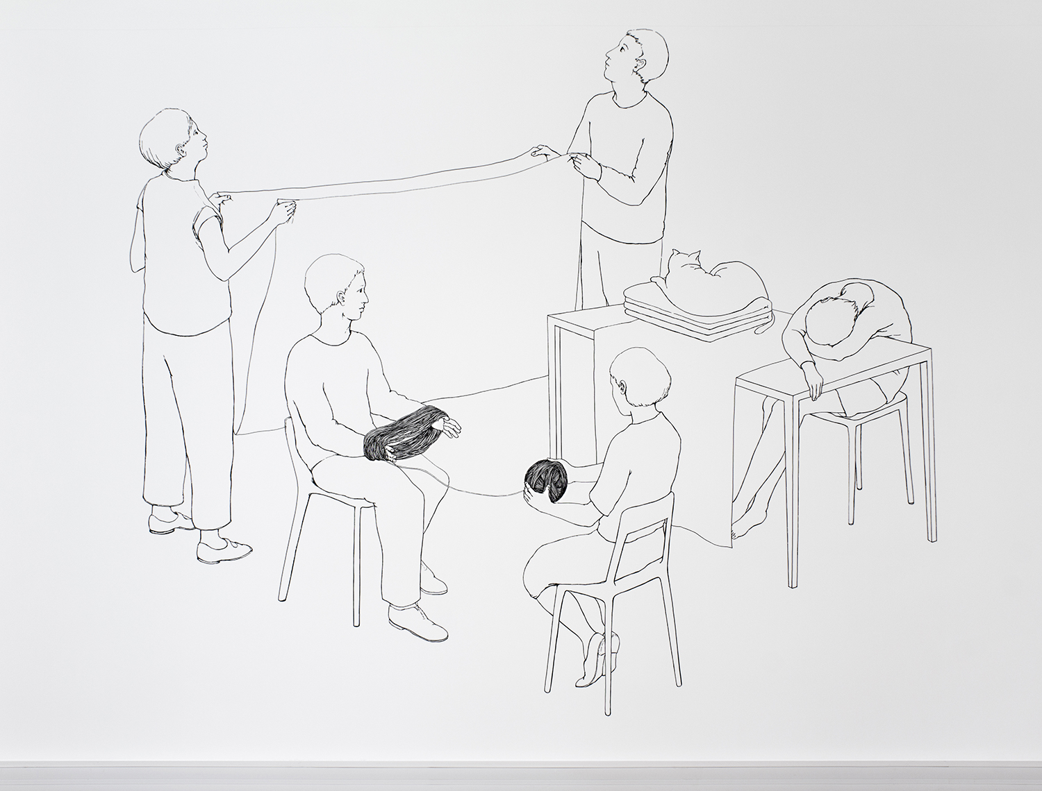 Transmettre, tisser, joindre, 2020 Dessin mural, 270 x 360 cm Vue de l’exposition Nous habitons ici ensemble, Musée d'art contemporain, Montélimar, 2020 Voir des détails
