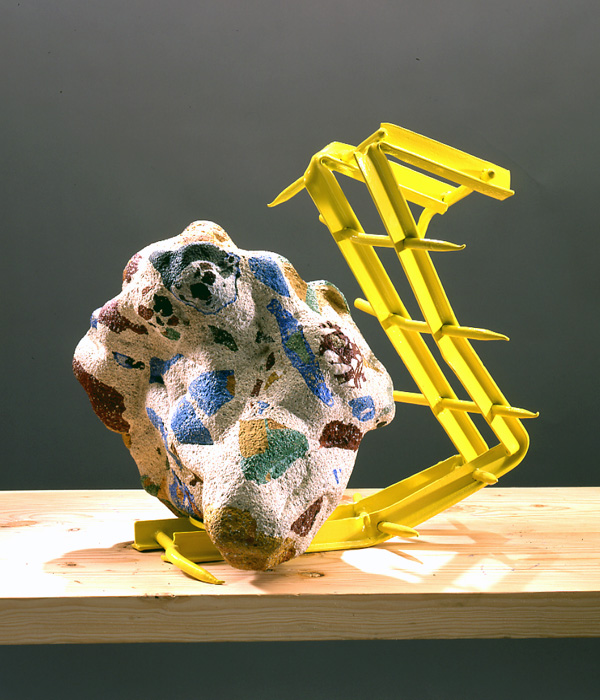 Maçonnerie colorée et bouchardée, acier peint, 58 x 60 x 50 cm