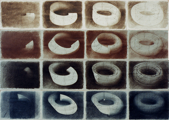 Étude pour Tore III-2 / Plein de vide 1991 Crayons de couleurs sur photocopies, format A4 chaque, 59,4 x 84 cm