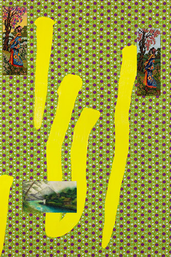 Tissu contrecollé sur bois, acrylique, gel médium, vernis