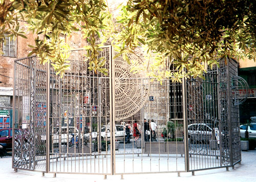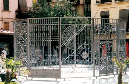 Fer forgé, peinture micassée, 12 panneaux de 350 x 200 cm, ø 720 cm