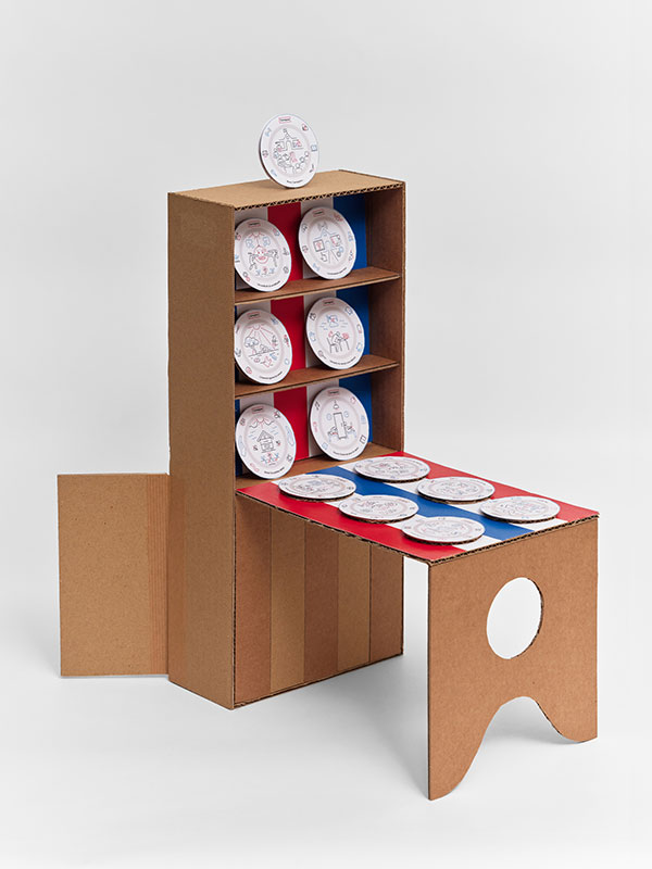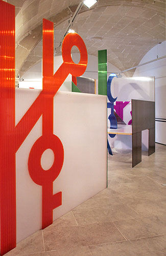 La légèreté, les qualités chromatiques et les proportions de ce matériau permettent à Stauth & Queyrel en effet, d’assimiler dans un seul et même sémaphore, signe et figure, schématisation et stylisation, symbole et image, couleur et lumière, vide et plein, etc.