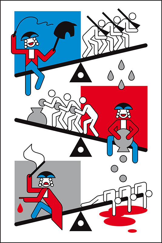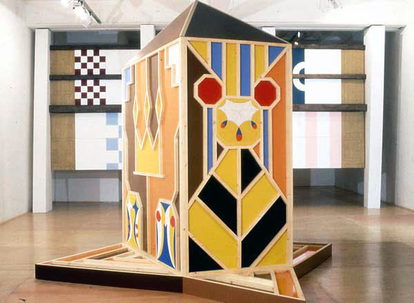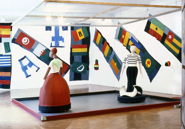 Ces sémaphores (du grec sema, signe, et de phoros, qui porte) ª pomme, lune, serpent ou anneau, licorne ou bougeoir, etc. ª constituent autant d’attributs symbolisant la nuptialité dans la plupart des cultures. Mais à la différence des systèmes graphiques ou alphabétiques passés et actuels, les signes et leur support ne forment ª dans leurs sémaphores ª qu’une seule et même entité plastique ou visuelle. L’indivisibilité du support (potence) et du signe (enseigne) comme celle du contenu et de la forme, a été rendue possible par le matériau dit Makrolon (du moins à une échelle supérieure à celle de la maquette).