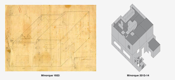 La maison minorquine des années 30 a fait l’objet d’une réinterprétation par C. Queyrel et P. Stauth à partir des archives (photographies, plans, dessins et textes) conservées à la Fondation Hartung-Bergman à Antibes. Les artistes l’ont décomposée en 21 modules cubiques, 12 pour le rez-de-chaussée, 9 pour l’étage, chaque module étant le sujet d’usages, de fonctions et de fictions. Ces modules permettent de multiples combinaisons de formes et d’espaces.