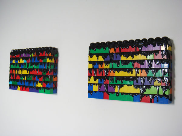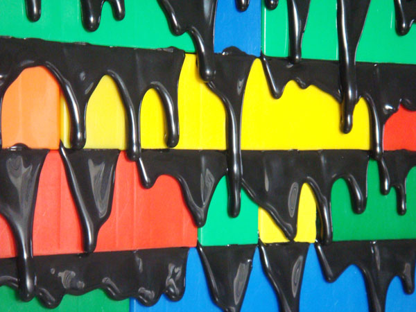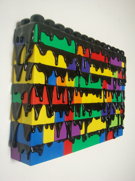 Briques en plastique de couleur et colle thermofusible noire, 26,5 x 50 x 6,5 cm