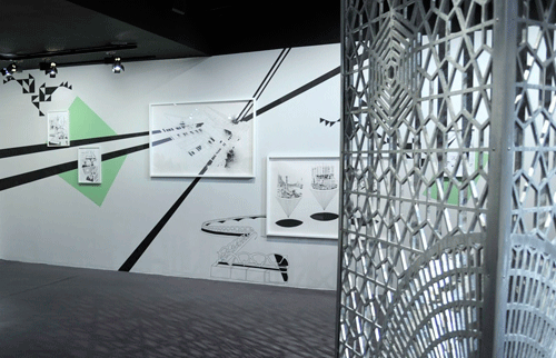 Vue de l'exposition "Les artistes et le Tramway de Paris", Hôtel de ville de Paris. - détail de La Grille.
