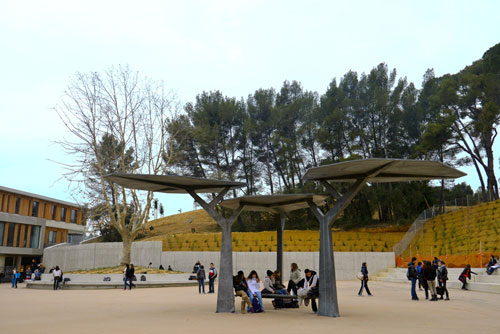 Le site du nouveau collège Joliot Curie (re-baptisé Nathalie Sarraute) est un site naturel remarquable. Il propose un rapport au paysage fort. Un des principaux objectifs du parti d'aménagement a été justement « d'ancrer le projet dans le paysage, de l'insérer harmonieusement dans son environnement ». Il a fallu pour se faire, exclaver des tonnes de roches calcaires, prendre à la nature pour donner à l'homme.