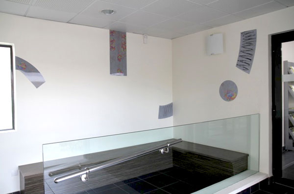 Images lenticulaires de dimensions variables, installées dans le hall d'entrée. |