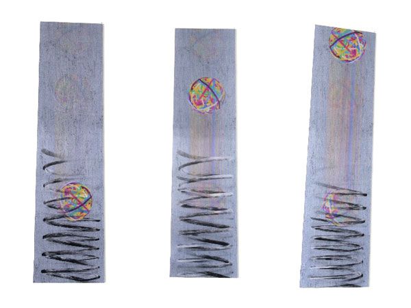 J'ai souhaité utiliser une image liée à la technologie, à la mécanique En effet, l'espace d'accueil destiné à recevoir le 1% est un lieu de passage entre deux bâtiments, petit avec peu d'espaces disponibles pour une intervention plastique. J'ai choisi d'utiliser des ressorts et des balles élastiques comme visuel des réalisations. Les ressorts et balles pour leur forme simple et presque abstraites et leur élasticité, contractions, extension ainsi que sur les rebonds et d'autres illusions de mouvements possibles avec ces objets.