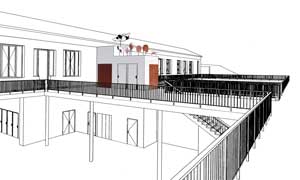 Cette construction sera visible par les élèves de maternelle depuis leur cour de récréation, en levant les yeux vers l'école primaire. Les élèves de cette dernière auront eux le même type de point de vue, augmenté de la possibilité d'emprunter la coursive du premier étage et d'ainsi monter au niveau de la partie émergente du module.