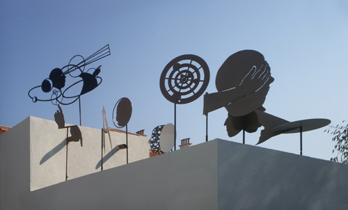 L'oeuvre est composée d'éléments de type girouette positionnés sur le toit de la cage d'ascenseur et de deux dessins découpés sur tôle enchassés dans le mur de celle-ci.