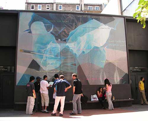 L'oeuvre est composée de 2 parties distinctes , complémentaires : - une sérigraphie monumentale d'une image numérique 6,75 x 4m, et un banc de 6,75 m de long à l'intérieur d'un patio - une publication donnée aux étudiants, lors de leur inscription.