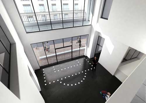Les salles de sports sont desservies par un hall d'accueil pourvu d'une grande façade vitrée, situé au rez-de-chaussée du bâtiment représentant une surface de 30 à 40 m2 et bénéficiant de plusieurs ouvertures. Considérant les caractéristiques de cette salle et afin d'obtenir sa mise en valeur de façon optimale , il est envisagé, s'agissant d'un lieu de passage très fréquenté, que le projet de réalisation artistique prenne place au sol du hall d'entrée ou puisse même s'étendre alentour,