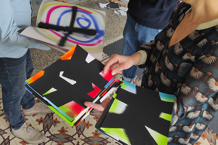 Dans le parcours, nous sommes attentif·ive·s aux différentes générations d’artistes et aux pratiques, ce qui est assez représentatif de notre travail documentaire. Chaque session fait l’objet de l’édition d’une brochure bilingue sur laquelle est indiqué le parcours de l’artiste, un visuel, son contact direct ainsi qu’un lien vers son dossier en ligne.