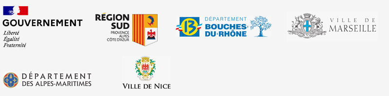 | La Drac Provence-Alpes-Côte d'Azur, Ministère de la Culture www.culture.gouv.fr/Regions/Drac-Provence-Alpes-Cote-d-Azur La Région Sud www.maregionsud.fr Le Département des Bouches du Rhône www.departement13.fr La Ville de Marseille www.marseille.fr Le Département des Alpes Maritimes www.departement06.fr La Ville de Nice www.nice.fr Certains développements du site ont bénéficié du plan de relance de l’État et du programme New Generation de l’Union Européenne