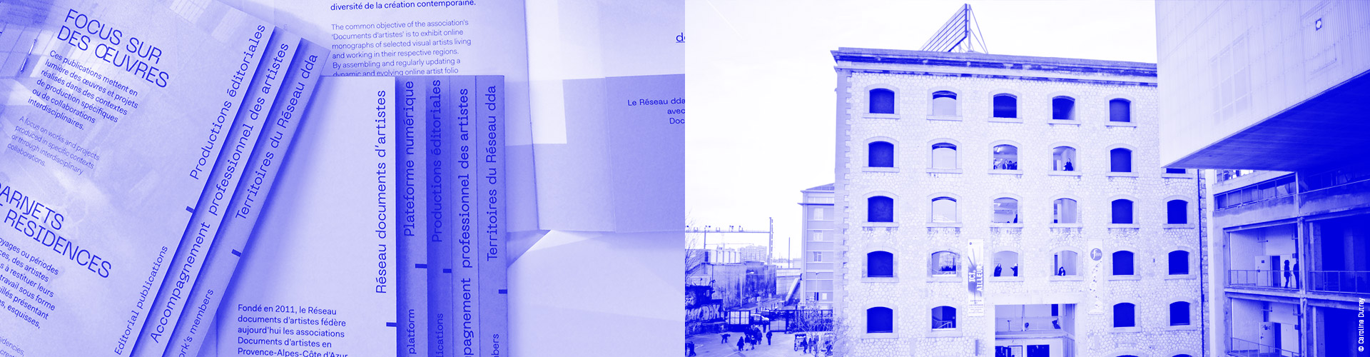 | Fondé en 2011, le Réseau documents d’artistes fédère les associations Documents d’artistes existant en région Provence-Alpes-Côte d’Azur, Bretagne, Auvergne-Rhône-Alpes, Nouvelle-Aquitaine, Occitanie, La Réunion et Genève. Le Réseau documents d'artistes s’est créé autour de l’envie de coopérer, de partager et de travailler collectivement autour de projets à son développement territorial. Ouverts aux collaborations, nous accompagnons les porteur·euse·s de projets et les professionnel·le·s pour le développement de nouvelles structures Documents d'artistes en régions. |